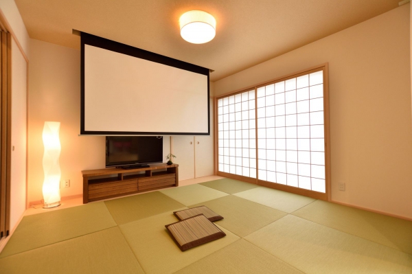尾道市 注文住宅 H様邸プライベートシアターのある和モダンの家。自由設計だからできる統一感ある室内コーディネートとスクリーンの高さからスピーカーの位置に至るまでこだわりぬいた住まいです。