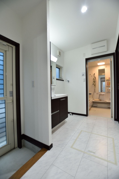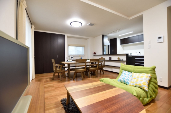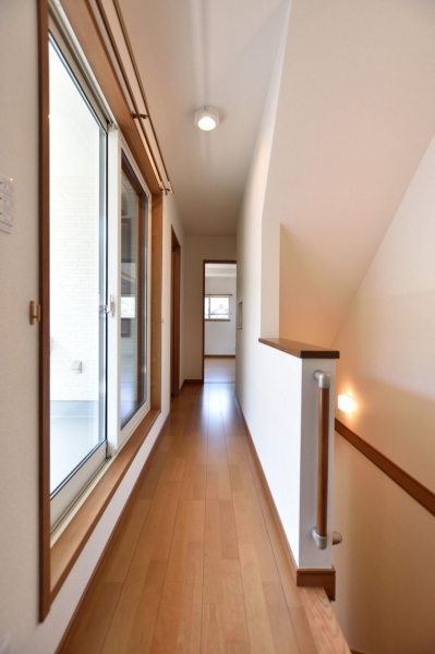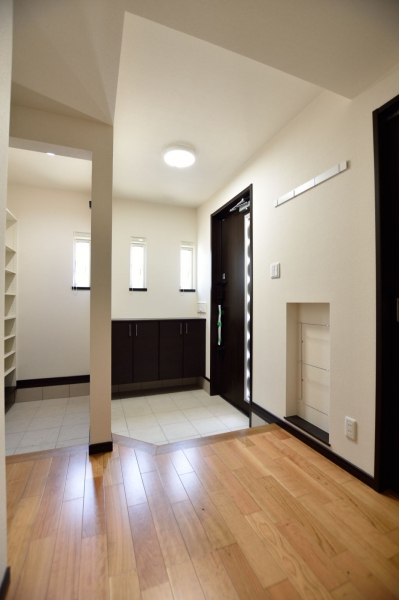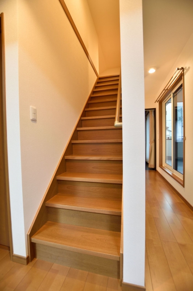 三原市 注文住宅 F様邸リビング階段を中心にした間取りとデットスペースを利用した設置階段付小屋裏収納やシューズクローク、納戸等、収納にも気を使った1邸。