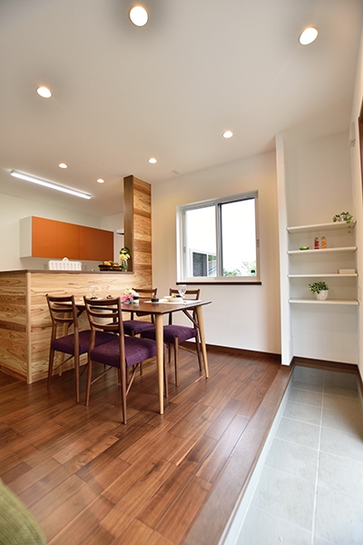 三原市 注文住宅 N様邸家族や友人と花火をみたりバーベキューができるテラス、ワンちゃんのためのインナーテラス、光も入りやすく開放感のある和室など楽しめる空間づくりを大切にしました。