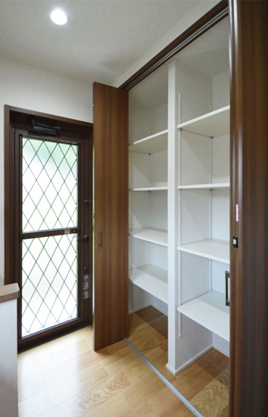 三原市 注文住宅 M様邸広々キッチンとたっぷり収のあるお家!キッチンにはパソコンの置けるワークスペースを完備。キッチンからすぐに使えて、家事にも趣味にも大活躍です。