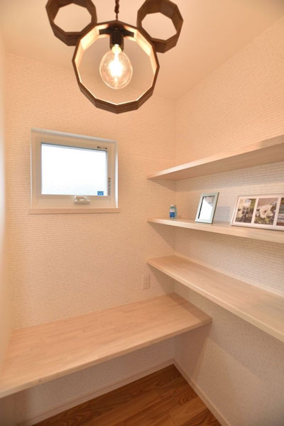 尾道市 注文住宅 O様邸少しの隙間を逃さず収納スペースに。こんなところに!と思うような空間を有効利用した収納スペースを確保しています。素材と照明にもこだわりました。