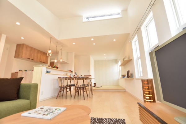 尾道市 店舗併用住宅 H様邸店舗併用住宅ながら大きな吹き抜けとスカイバルコニーを備えたこだわりの家
