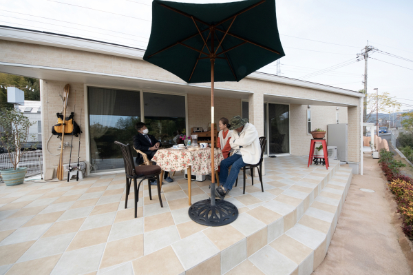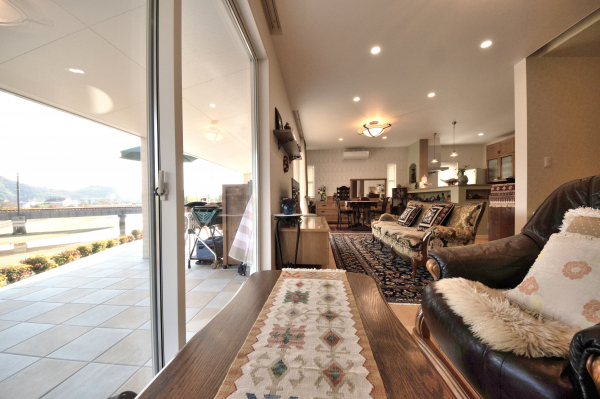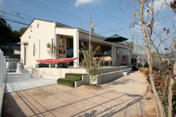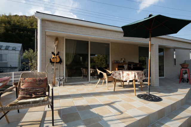 竹原市 注文住宅 平屋 優雅な広々タイルデッキのあるお家
