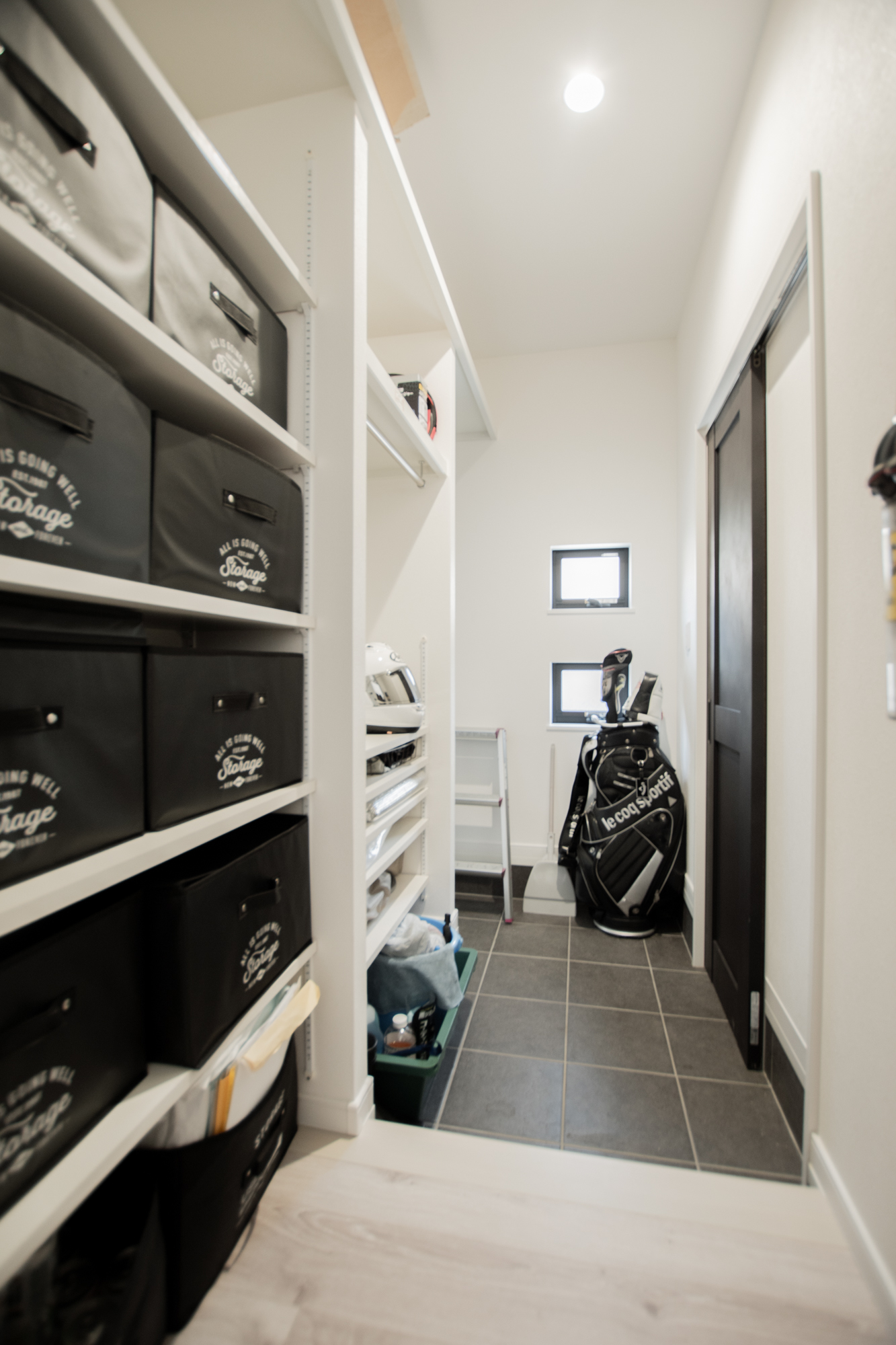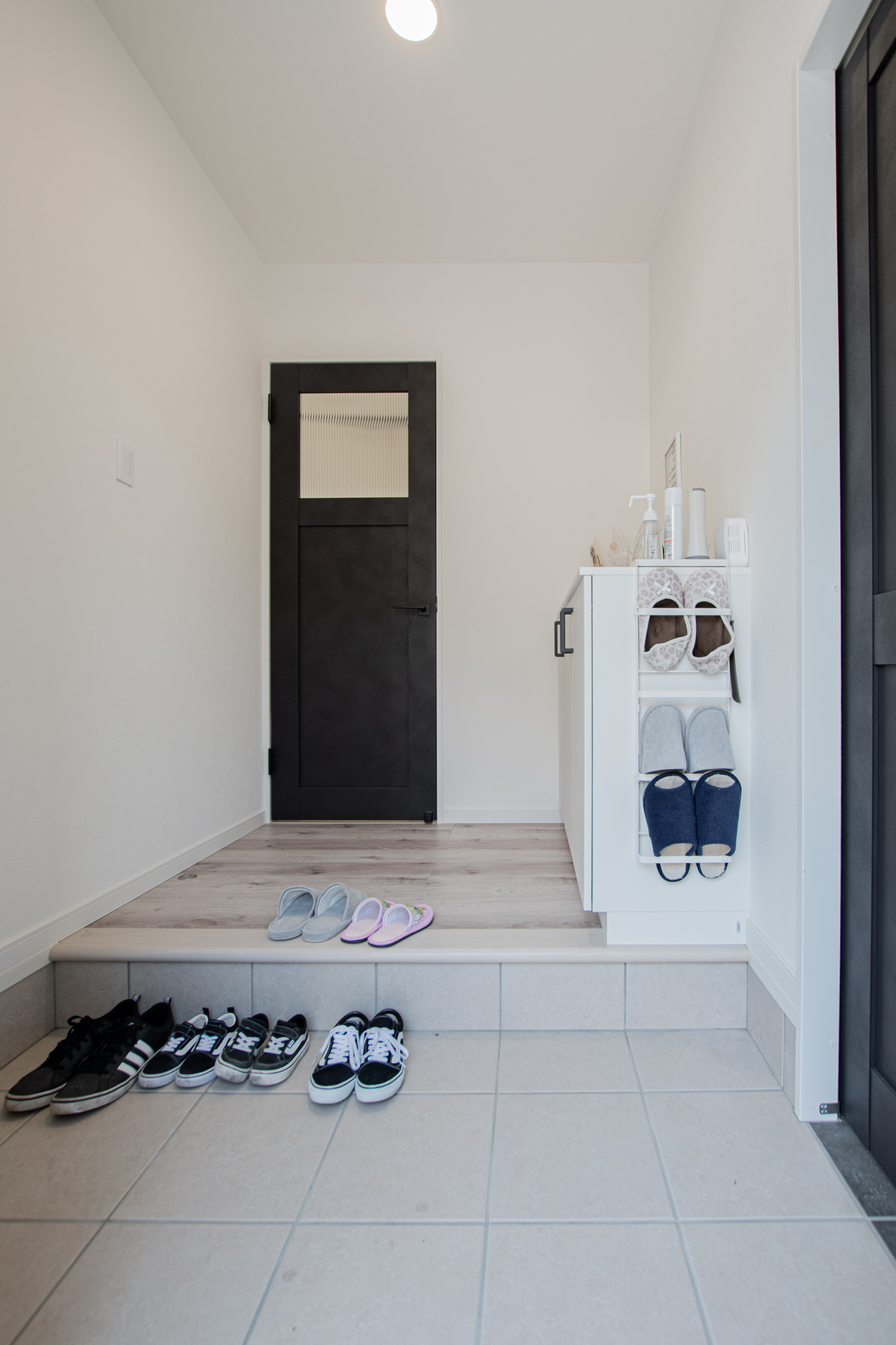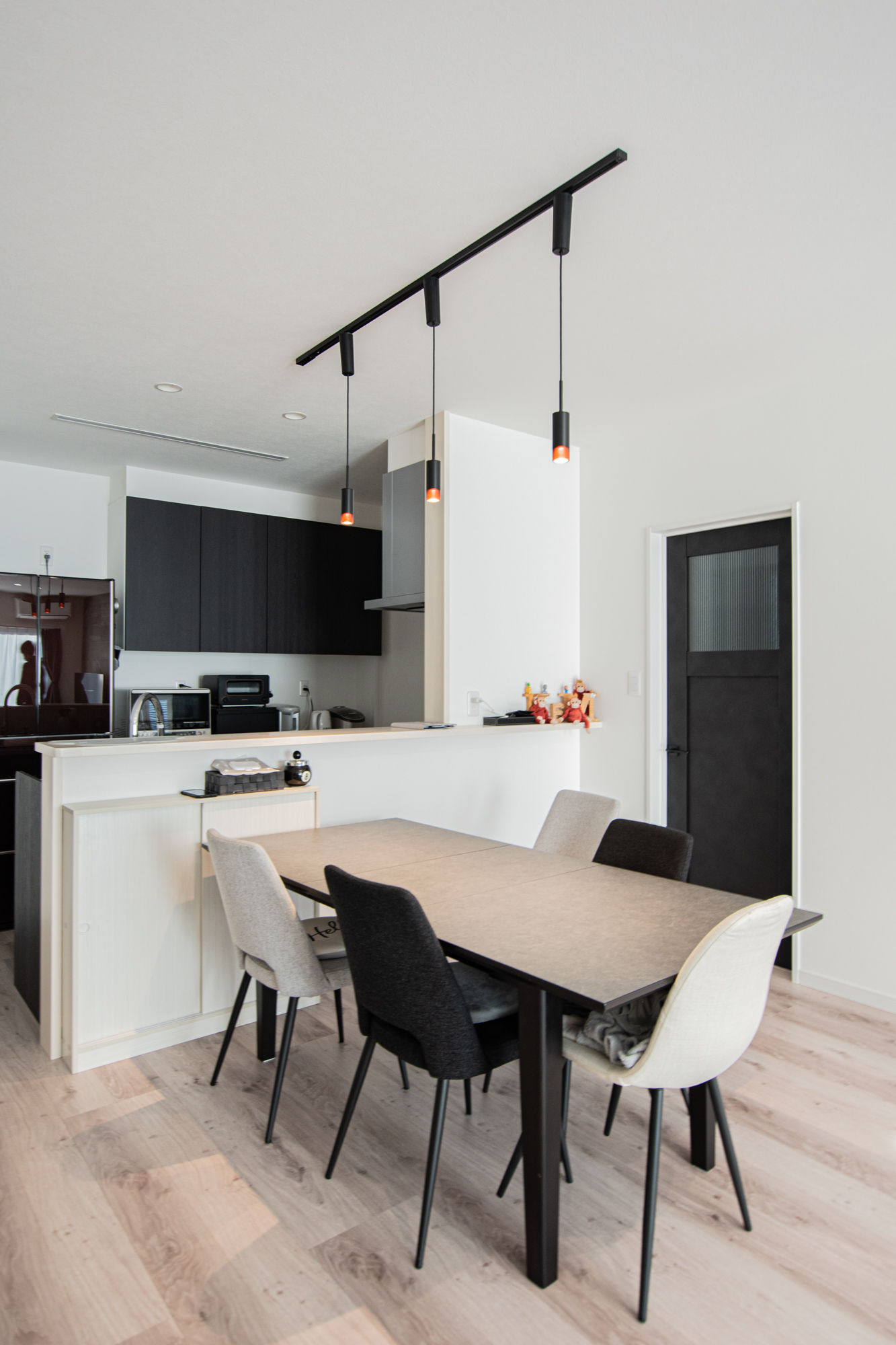 夫婦の好きな色合いが「白×黒×グレー」で、雰囲気を重視し統一感のある家をテーマに進めました。