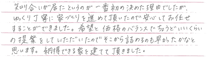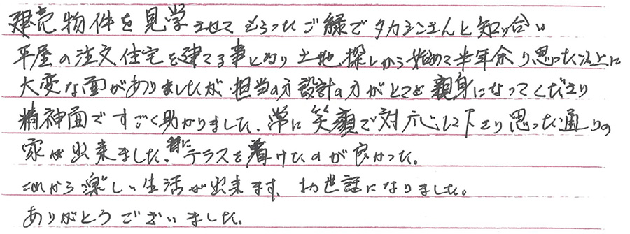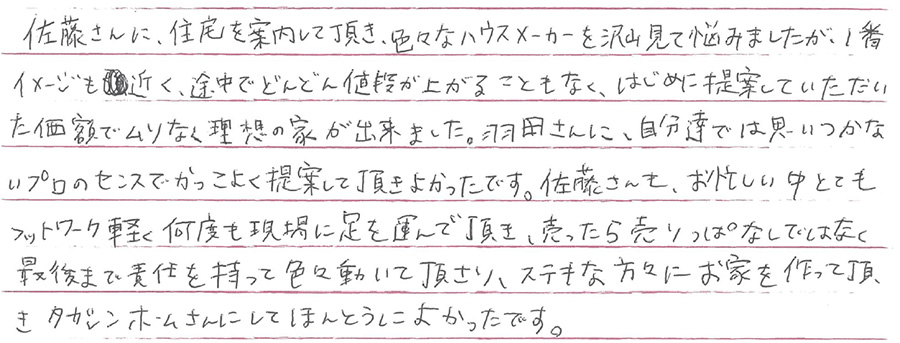 太鼓判とは、太鼓のように大きな印判のこと。信頼できる、確実であるという保証です。 タカシンの家づくりに「太鼓判」を押してくださったお客様の声をご紹介します。
